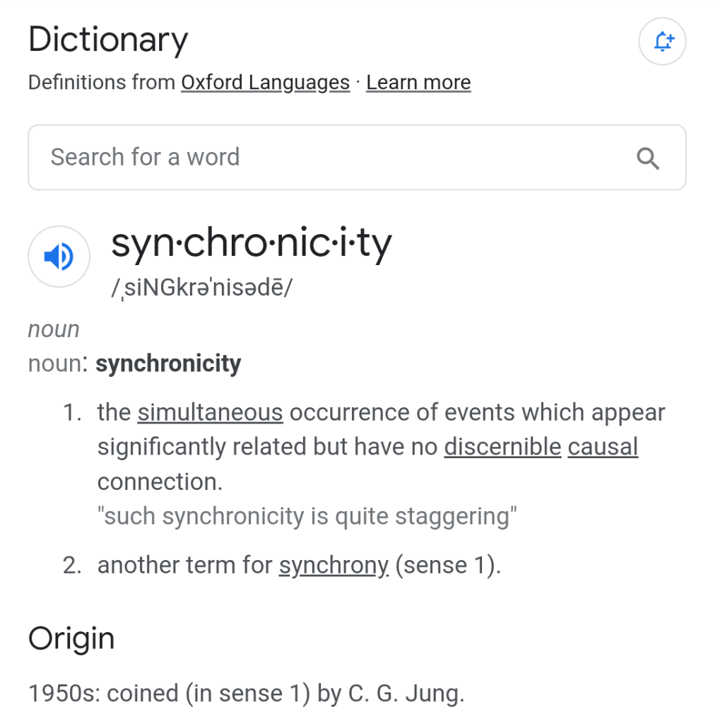 Some of these synchronous events have become “Revelation-Like..”, in which they have become correlated with a deeper part of what I call my “Spiritual Journey”, connected with things that have shaped my life in ways that are out of my control, and have given me new insights into the actual purpose of life.